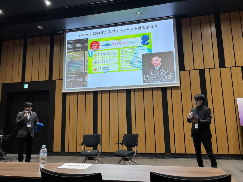 文化放送・radikoの村田武之氏とオトナルの八木太亮氏が登壇した「音声メディアの現在地と、これからの話― ラジオ・ポッドキャスト・音声ビジネスのリアル ―」では、まさにこの点が議論された。パーソナリティの感情や人柄がダイレクトに伝わる音声メディアは「人間性」の象徴であり、若年層におけるポッドキャストの高い利用率や、熱狂的なファン(ファンダム)を通じた大型イベントの成功など、音声ビジネスの再評価が進んでいることが示された。