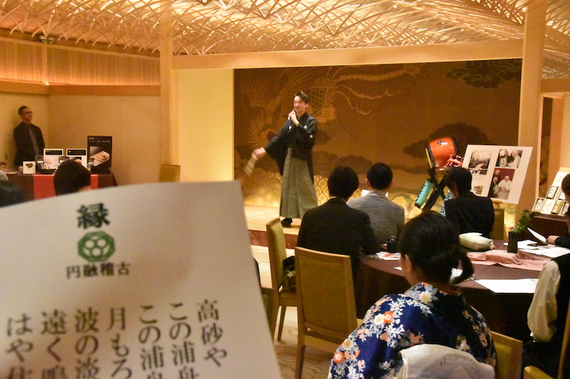八芳園は3月3日、着地型着地型商品体験会を開催。観世流武田宗典氏の謡や曹洞宗中野東禅無心禅の法話、殺陣、酒井菜法住職のマインドフルネス、福島美生師の古代文字書道、南京玉すだれなど様々な日本の伝統芸能が披露された。