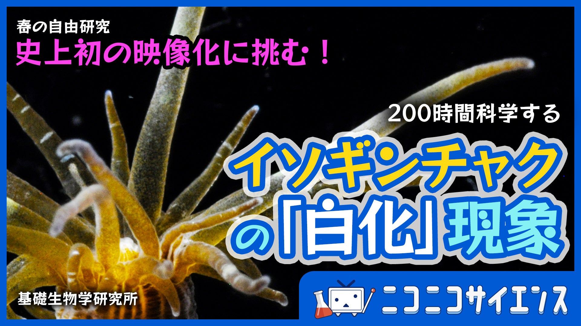 基礎生物学研究所とタッグを組み、過去の超会議ではテントウムシやプラナリアなどを取り上げ自由研究してきたニコニコサイエンスの今回のテーマは、イソギンチャクの「白化」現象。超会議期間の約200時間を通して、いまだ謎に包まれる刺胞動物「イソギンチャク」の生態を解明するとともに、サンゴなどを死に追いやる「白化」現象を科学して、どのように防げるか、回復させることができるか考える。「白化」現象の映像化は史上初の試みとなる。