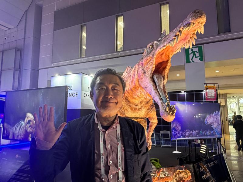 東京国立博物館アンバサダーも務める金丸代表は、学術的裏付けと自社開発のロボティクス・造形技術、エンターテインメントショーとして独自IPで構成し、技術・造形・演出を自社完結・統合した“リアリティ重視”の恐竜ショーで、国内では年間約20万人規模の動員の実績を持つ。「SusHi Tech Tokyo」には初出展で、「海外市場に向け、国際展開を見据えている。また、国内では常設シアター開設に向けてパートナーを模索している」と話す。初日午後には、すでに5カ国から打診があったという。
